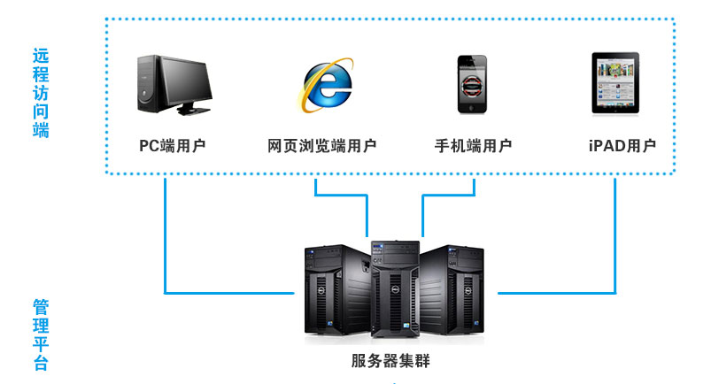 根据实践证明服务器必须是大带宽,至少要百兆带宽才能满足上百个家长同时占线观看,百兆带宽上传的视频非常清晰,而且不会出现画面模糊或卡的现象。幼儿园要实现远程监控就必须带有服务器,它可以不停的运转工作,也就是说24小时随时处于开机状态,服务器不同电脑的地方就是不间断的上传和下载;如果是电脑连接监控,就必须让电脑在24小时期间休息,不然电脑过热会容易损坏,手机看幼儿园监控软件也就失去随时观看。还有就是电脑上能放硬盘的地方比较有限,而服务器可以把多块硬盘集于一体,即使一块硬盘坏了也不会受到影响,因为有备用硬盘在不停的做拷贝,幼儿园也不会担心数据会消失掉。